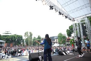 Suasana semakin hangat ketika sang vokalis, Tantri Kotak, mengungkapkan bahwa dirinya memiliki garis keturunan dari Kuningan, yang menambah kedekatan emosional dengan penonton.