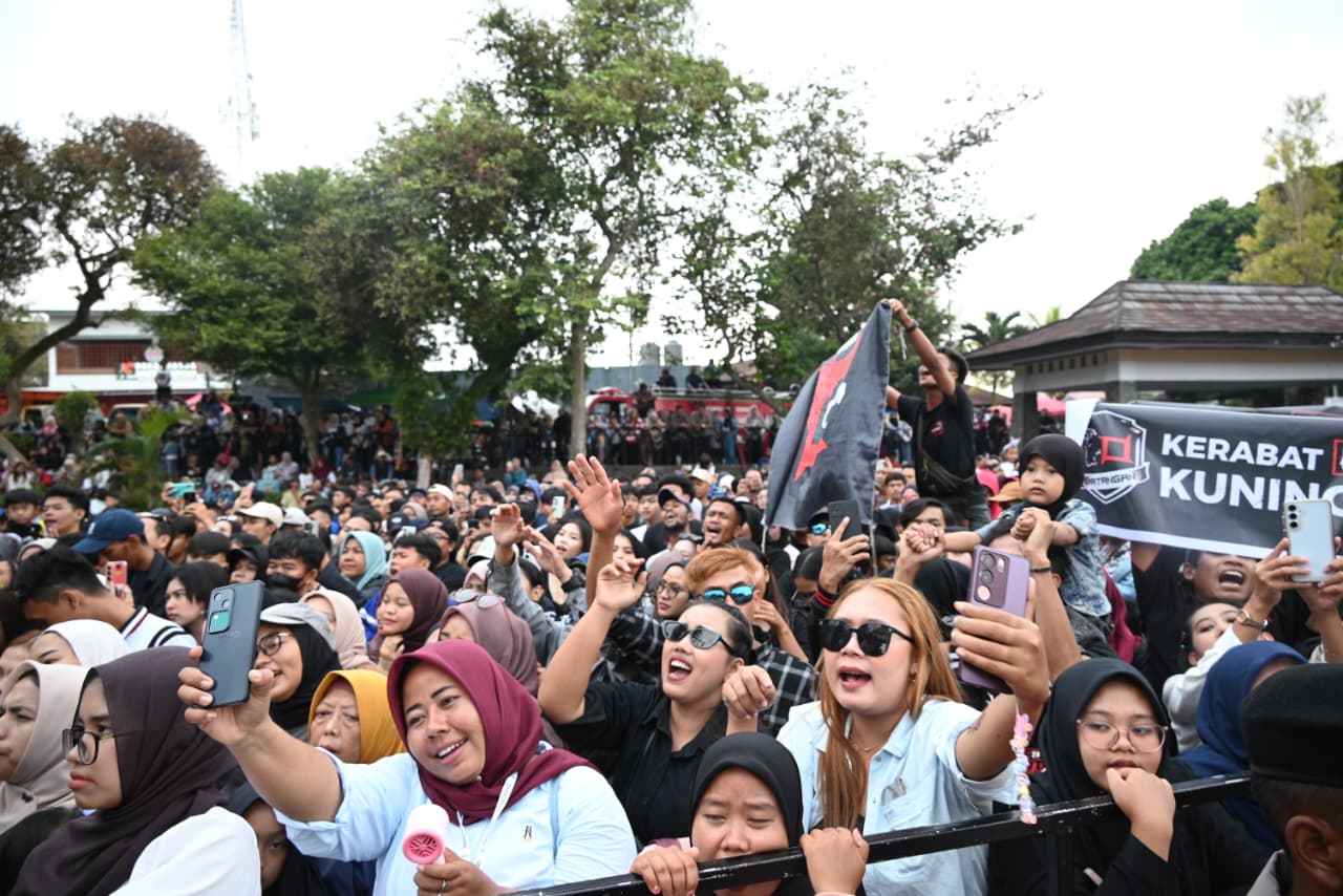 KUNINGAN CYBER POLKRIM – Konser musik Band Kotak disambut antusias ribuan warga dari berbagai kalangan dengan memadati area Pandapa Paramarta. Konser ini  menjadi bagian dari rangkaian perayaan Hari Jadi Kuningan ke-527 setelah sempat tertunda.